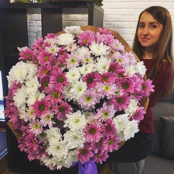 Милый букет из белой хризантемы и гипсофил! Прекрасно украсит любое ваше событие, и подарит море улыбок! Состав Хризантема - 5 шт. Гипсофила - 5 шт.