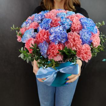 Стильный букет из белых роз в шляпкой коробке премиум.
