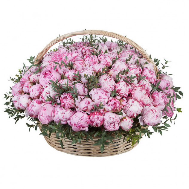 Упаковка (пленка с лентой) 2шт., Фисташка 20шт., Пион 101шт., Корзина плетеная большая