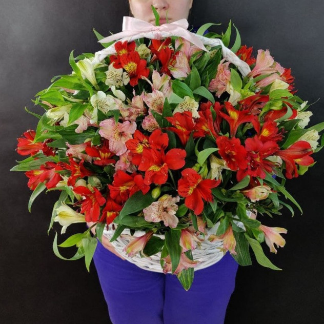 Прекрасная корзина из яркой альстромерии! Чудесный подарок на любой случай!