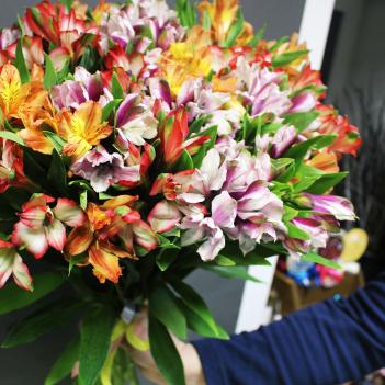 Состав: Упаковка для букета: прозрачная пленка с лентой, Гербера 15шт., Рускус 20шт., Корзина плетеная, Пиафлор (оазис)